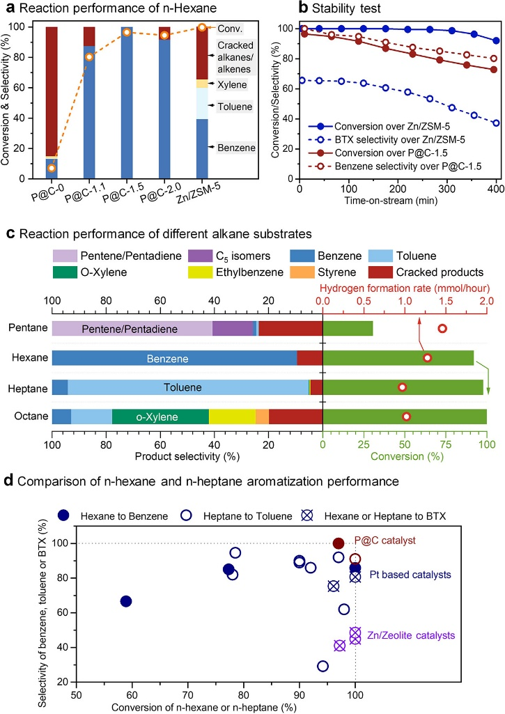 图1 P @ C独特的定向脱氢芳构化性能